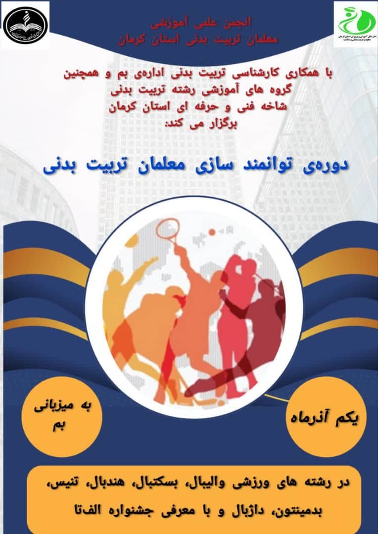 انجمن معلمان تربیت بدنی استان کرمان با هدف ارتقای سطح دانش، مهارت و همافزایی میان معلمان این حوزه تشکیل شده است. ما با تمرکز بر آموزش، پژوهش، تبادل تجربه و برگزاری دورهها و همایشهای تخصصی، در تلاش هستیم تا نقش مؤثری در رشد حرفهای معلمان تربیت بدنی و ارتقاء کیفیت آموزش در مدارس ایفا کنیم.